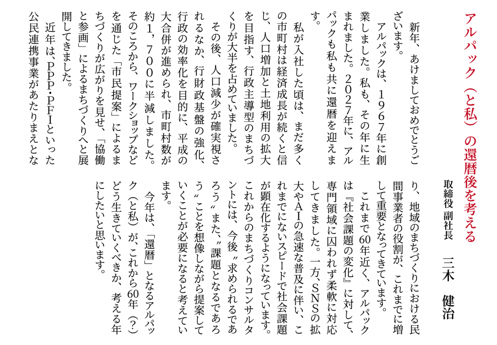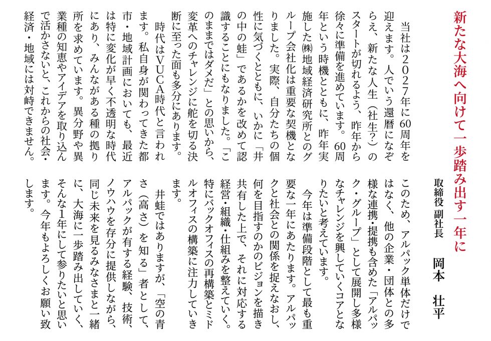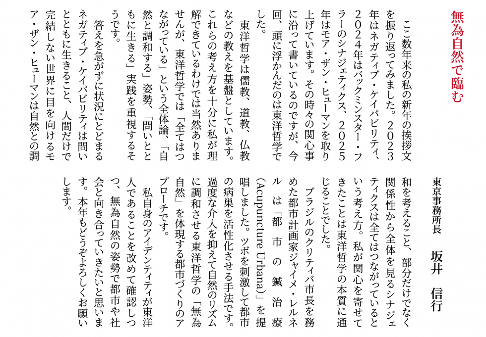 弊社取締役、各事務所長より新年のご挨拶をさせていただきます。