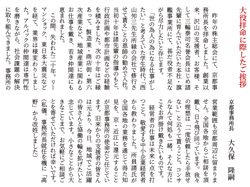 京都事務所長 大久保 隆嗣