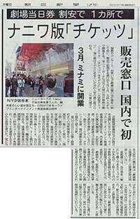 - 国内初の日本版チケッツ(当日券販売センター)の実験開始/大阪事務所 森脇宏