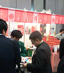 こうしたブランド化の方向性を試してみるために、2月16~17日に大阪で開催された「アグリフードEXPO」に出展しました。約200のブースが出展し、1万人以上が来場する事業者向けの大きな展示・商談会です。JA淡路日の出も、職員のみならず、トマト農家も含めて、赤と緑のトマトジャケットに身を包み、統一デザインで演出されたブースで、トマトのPR、試食、「プレミアム商品」の販売を行いました。試食や展示は大好評。交換した名刺は約150件にのぼるなど、PRの成果は十分ありました。トマト農家も、直接、バイヤーの方などと接触して評価を聞き、実感を持った様子。生産者の研修としても非常によい機会となりました。