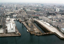 前述のように、大阪港の木津川筋は、大阪の工業を支えてきた地域であり、特に造船ブームに沸いた大正時代の最盛期には32社の造船所が群立したと言われています。また、大正末期には、川尻に木津川飛行場が開港され、いわば大阪産業の最先端地域でもありました。その後、高度経済成長期に、船舶の大型化が進み、河川沿いの造船所では大型化への対応に限界があるため、移転、縮小、廃業する造船所が相次ぎ、名村造船所も佐賀県へ移転し、その跡地の有効な利用方法が模索されていました。