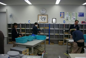 関電グループの特例子会社であるという強みを活かした仕事として、(1)メールサービス、(2)花卉栽培・花壇保守、(3)印刷・製本、(4)包装、箱詰め、(5)ヘルスケア、が行われています。「メールサービス」は関電内の郵便局として106のポストに社内連絡便や郵便物を仕分けして配達しています。「花卉栽培・花壇保守」は発電所などの事業所の花壇のメンテナンスを行っています。