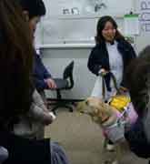 お話を聞いている時に、これからマッサージの仕事につかれる視覚障がい者の方が盲導犬と一緒に出勤してこられました。