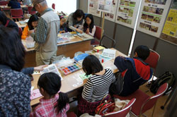 ![]() 子供たちでにぎわう体験コーナー |