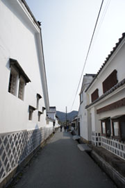 翌日、萩のまちなかを歩きました。武家屋敷が並ぶ白いなまこ壁や黒板塀、石州瓦の屋根並、土塀と夏みかんの風景、また格子や虫籠窓の町家が連なる港町など、萩では多彩な町並みに出会います。それぞれの町並みでは、地元の方から丁寧な説明を伺ったり、夏みかんを戴いたり・・・。