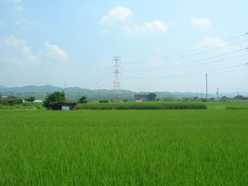 ![]() 都市近郊の農地:背後の高台がニュータウン(精華町) |