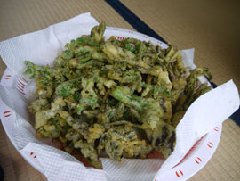 山菜の天ぷらに伊賀牛の炒め物、タケノコとワラビの煮物、先ほど作った草餅に山菜の炊き込みご飯。どれも地元ならではの何気ない日常の食べ物ですが、地元の食材を使った安全で安心なご馳走でした。