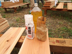私も汗をかきかき塗りました。塗る感じは浸透系の自然塗料と似ていましたが、水の弾き方がすごくいいようです。伝統の素材が機能的に優れているということを体感し、これからも機会があれば使ってみたいと思いました。まずは自分の家で試してみたいですね。