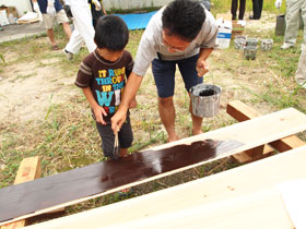 /京都事務所 石川聡史 大阪事務所 中塚一・絹原一寛・橋本晋輔 - 守山市でベンガラ塗りワークショップをしました/京都事務所 三浦健史