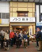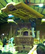 さっそく、今回、12月3日に実施されたJTBの「地恵のたび」に参加しました。コシノファミリーゆかりの地マップを片手に、小篠さんが営んでいた「洋裁コシノ」がある岸和田駅前商店街を抜け、歴史的な街並みが集積する岸和田本通り商店街、紀州街道を横目に、一路、岸和田だんじり会館に。この会館は、だんじり関連の展示のみならず、次世代の練習(学び)の場にもなっており、練習風景が新鮮な展示物となっています。昼食は、回遊式日本庭園を有する「がんこ岸和田五風荘」へ。昼食後は、岸和田城下を散策し、原則非公開のだんじり工務店も見学。幸運にも、地車の解体現場に遭遇しました。その後、まつりの正装、祭礼衣装をはじめとするだんじり産業を巡って半日コースのツアーを終えました。