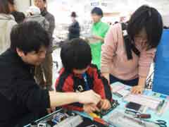 回収ボックスは、ホームセンター、家電店、ショッピングセンターにご協力いただき設置しました。また、来店客にボックスデザイン等に関するヒアリングを行 うとともに、小型家電回収の重要性を伝えるために“使用済み小型家電解体ショー”を行いました。どの部分にレアメタルがあるのかわかりやすいと好評で、 「解体してみたい!」と急遽参加される方もいました。調査では、拠点回収の必要性を再認識でき、ボックス上部の使用済み小型家電の解体ディスプレイも好評 価でした。一方で、回収ボックスの改善点について貴重なご意見もいただきました。