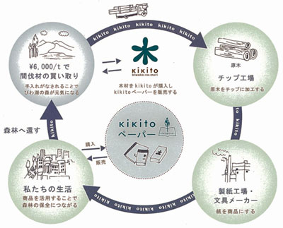 三方よし(売り手よし、買い手よし、世間よし)を理念としたkikitoペーパーの仕組み(kikitoちらしより)