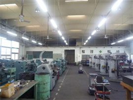 これを改善するために、外壁の断熱や屋根の遮熱・断熱性能を上げるとともに、自然換気を有効に活用する工夫がなされました。既設のトップライトを開閉式に改修し、熱い空気を逃がし、壁の窓には夜間の涼しい空気を取り込む(ナイトパージ)小窓が設置されました。シーリングファンにより室内温度を拡散するとともに体感温度を下げる工夫もなされています。
