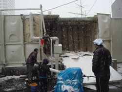 ○この地域は実は上水道は止まっていなかったんです。ただ、停電になってしまったので受水槽へのポンプアップができなくなったんです。私たちのマンションは非常用の自家発電機がありますので本来は電源が切り替わり、水道は止まらないはずだったのですが、地震の影響で火災報知機が誤作動したため自動的に水道が消火ポンプに接続されてしまったんですね。そういう想定外のことが起こってしまいました。