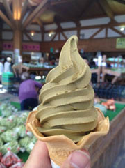 まず、吉野路大淀iセンター(道の駅)。ここでは、なんといっても「番茶ソフトクリーム」を楽しめます。番茶パウダーが仕上げに降りかけられており、番茶の奥深い風味が濃厚な味わいを醸し出しています。ここでは、そのほかに「番茶わらびもち」「番茶ラスク」「番茶あん食パン(今回の取材では売り切れでした)」などが楽しめます。そして、番茶グルメだけでなく大淀町全域から持ち込まれたいろんな旬の農作物が所狭しと並んでいますので、そちらも楽しめますよ。私は、わらび(あく抜き用の灰もついてます)を買って家でおひたしにして食べました。初夏を感じる爽やかな味が美味でした。