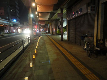当日は、来街者の方から「今回の社会実験で初めて本町通りというのを意識した」という声や、商店主から「社会実験によって商店街として連続性・一体感が感じられた」という声があった他、商店街として取組をしているのであれば協力しようと、自主的にお店の前に独自に灯りを設置してくれたお店もあり、一つの商店街ということを本町商店街の商店主の方に改めて確認していただくいい機会になったと思います。