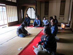また、お茶や和菓子を召し上がっていただきながら、姫路市職員による旧水井家住宅についての説明を聞いていただいたり、今後の活用方法についての意見交換を行いました。