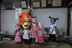 公民館では1枚の紙からカブリモノを作り「変心」するワークショップを開催しました。女性は普段、お化粧で変身しているので、ハマるのは変身に飢えている子どもと男性でした。このまちも変身を求めています。 今回の目的は、外への発信ではなく、地域に暮らす人が地域を見つめ直し、会話をし、「考えてまちを使う」ということです。手伝ってくれる人に声をかけ、自ら空き店舗・空き家の所有者に話しをし、自分たちで取り組みたいことをまとめる。きっかけは小さな動きですが「続けよう」「次は何?」といった声があがり始めました。次は3月に予定している「おひなさまロード」でお出会いしましょう。
