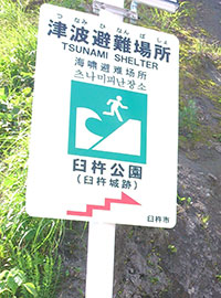 ![]() 「津波防災に取り組む町」広川町の看板(和歌山県) |