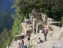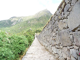 インカ道の中にマチュピチュへ続く道があるのですが、奇跡的にスペイン人に発見されなかったため、インカ式の石畳の道だけでなく、多くの遺跡が現在も残っています。外国人の観光客にはこのインカ道を3泊から4泊程かけて歩いてマチュピチュを目指すインカトレッキングが人気だそうです。ただマチュピチュ遺跡を見るだけでなく、古代にどのような道を通って、人や物資、情報が行き来したかを体感できるなんて想像しただけでわくわくします。私は今回の旅の中で3泊かけてトレッキングする時間を取ることはできなかったのですが、少しインカ道を歩いて太陽の門(インティプンク)やインカ橋を見て回ることにしました。