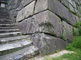![]() 大阪城の石垣に残る機銃掃射の弾痕 |