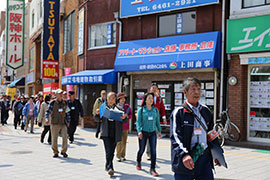 午後は、午前に作ったグループ単位で実際に大阪城まで歩きました。約10kmの行程をリーダー役の人はグループ全体の様子の確認、メンバーの方はルートの状況やお互いの体調等を気遣いつつ、約3時間かけて大阪城まで踏査しました。