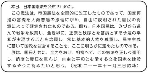 五日市憲法草案にある庶民の基本的人権の自覚に着目された根底にある「信念」は何に根ざしているのでしょう。私の想像ですが、先帝の残された最後の「詔勅」があります。新憲法発布で、国民と政府を拘束する法的効力は無くなっていますが、天皇家の信念の根拠であってもおかしくはありません。日本国憲法公布の詔勅です。僅か300字ほどの短い詔勅です。