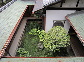 事務所の周りにも、歴史ある建物が点在しています。事務所の西隣には愛珠幼稚園があります。明治13年に創設され、大阪で一番歴史の長い現役保育園です(現在は耐震改修中)。事務所の北側には蘭学者・医者として知られる緒方洪庵が江戸時代後期に開いた適塾があります。もともと上層階級の商家であったこの建物は、店舗棟1階の商業空間を学問所に、2階の物置を塾生生活空間に、そして奥の住居棟を洪庵一家の住居にと、うまく使い分けていたようです。
