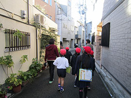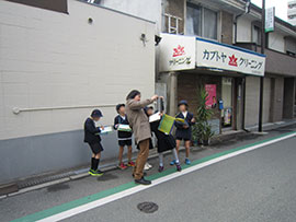 この検討の一環で先般、大阪市内の小学校において、子ども向け建築プログラムの社会実験、「子ども建物たんけん隊」を行いました。