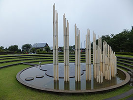 現在の平和小学校校内には、卒業生である杉原千畝氏の生誕百年を記念した「ちうねチャイム」が設置されています。2本の曲線を持つモニュメント型のチャイムは、毎朝8時15分に鳴り、命の尊さ、思いやりの心、平和、愛を表現しています。