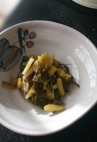 道の駅賤母(中津川市)では、テレビなどで紹介されていた「すんき」を見つけました。赤カブの葉を塩を使わず乳酸菌発酵させた、すっぱいお漬け物で木曽地方の健康や美肌の秘訣とも言われています。