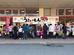 地域の特産品を地域で販売・PRする取組は、多くの自治体で実施されています。しかし、「集客が見込めない」、「参加者が特定の層に限定される」、「予算が切れて一過性になる(定着しない)」などの課題があり、成功例が少ないのが現状です。佐用町では、これらの課題を見据えて企画を検討し、地元で集客力があるマックスバリュ佐用店にアプローチしたところ、「地域貢献、地域連携事業を重視しており、ぜひ協力したい」とご快諾いただき、連携が実現しました。マックスバリュ佐用店からは、場所の提供だけでなく、新聞の折込広告や店頭での事前PR、購入者への景品提供など、多大なご支援をいただき、より効果的な販売・PRができました。