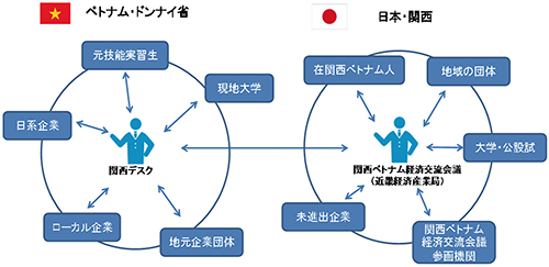 べトナムとの取引・進出ニーズの高まりを受けて、関係機関による「関西ベトナム経済交流会議」が設置されており(事務局・近畿経済産業局)、ベトナム商工省やホーチミン市・ドンナイ省と「経済発展促進にかかる協力文書」を締結するなど、現地の投資環境改善に向けた取組が推進されています。日本の技術協力を得て、ベトナム側も自国の裾野産業及び人材の高度化、グローバル・サプライチェーンの生産拠点を構築するなど、Win-Winの関係づくりが図られています。
