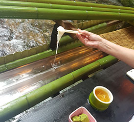 な時のおすすめが、京都随一の避暑地である貴船の川床で食べる流しそうめんです。