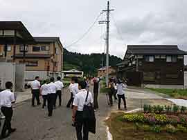 熊本県南阿蘇村の復興むらづくり推進協議会の皆さんに同行させていただき、中山間地域での震災復興の先進地として、長岡市山古志地域に伺い、現地では、復興公営住宅やインフラ復旧等の状況を見学したほか、住民の方々との意見交換などを通して震災後の思いや取り組みなどもご紹介いただきました。