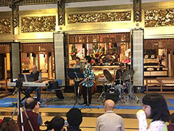 銀杏の木の下で繰り広げられる予定だったステージは、西山別院の本堂で行われ、厳かな雰囲気の中でクラシックやジャズが演奏されました。