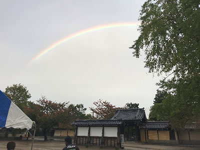 そして、フェスの終了時間に合わせて、一瞬雨が上がり晴れ間がのぞいたかと思うと、東の空に大きな虹の橋がかかるというドラマティックな演出に、来訪者も実行委員にも笑顔が広がりました。雨のイベントもなかなかに楽しめるものです。