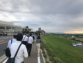 ![]() 枚方から高槻・茨木方面へ歩く人々(枚方大橋) |