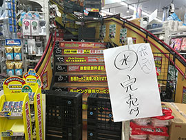 ![]() 地震当日の夕方、量販店にてボンベと水の品切れを表すビラ |