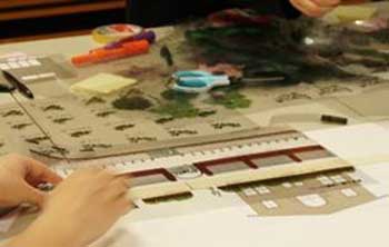 〝景観デザインワーク〟は、赤塚地区が有する崖線等の〝高低差のある地形〟や、参道等の〝みどりと歴史があるまちなみ〟といった、魅力的な景観資源に調和する建物デザインとはどのようなものかについて考えるものです。建物・屋根・柵・塀・植栽等の様々なイラストパーツを用いて、その場で 〝選んで、切って、貼る〟という形で、地域住民の皆さんが考える赤塚地区にふさわしい建物デザインを、楽しく、視覚ベースでつくりあげ、そのようなプロセスの中で交わされた議論をもとに、ふさわしい建物デザインのあり方を言語に置き換え、計画に反映させるという方法で行いました。デザインワークの中では、「地形を生かしたテラスをつくりガーデニングしたい!」、「参道の並木に合わせて庭に木を植えよう」等、赤塚地区の魅力を活かした様々な建物デザインのアイデアが出ました。