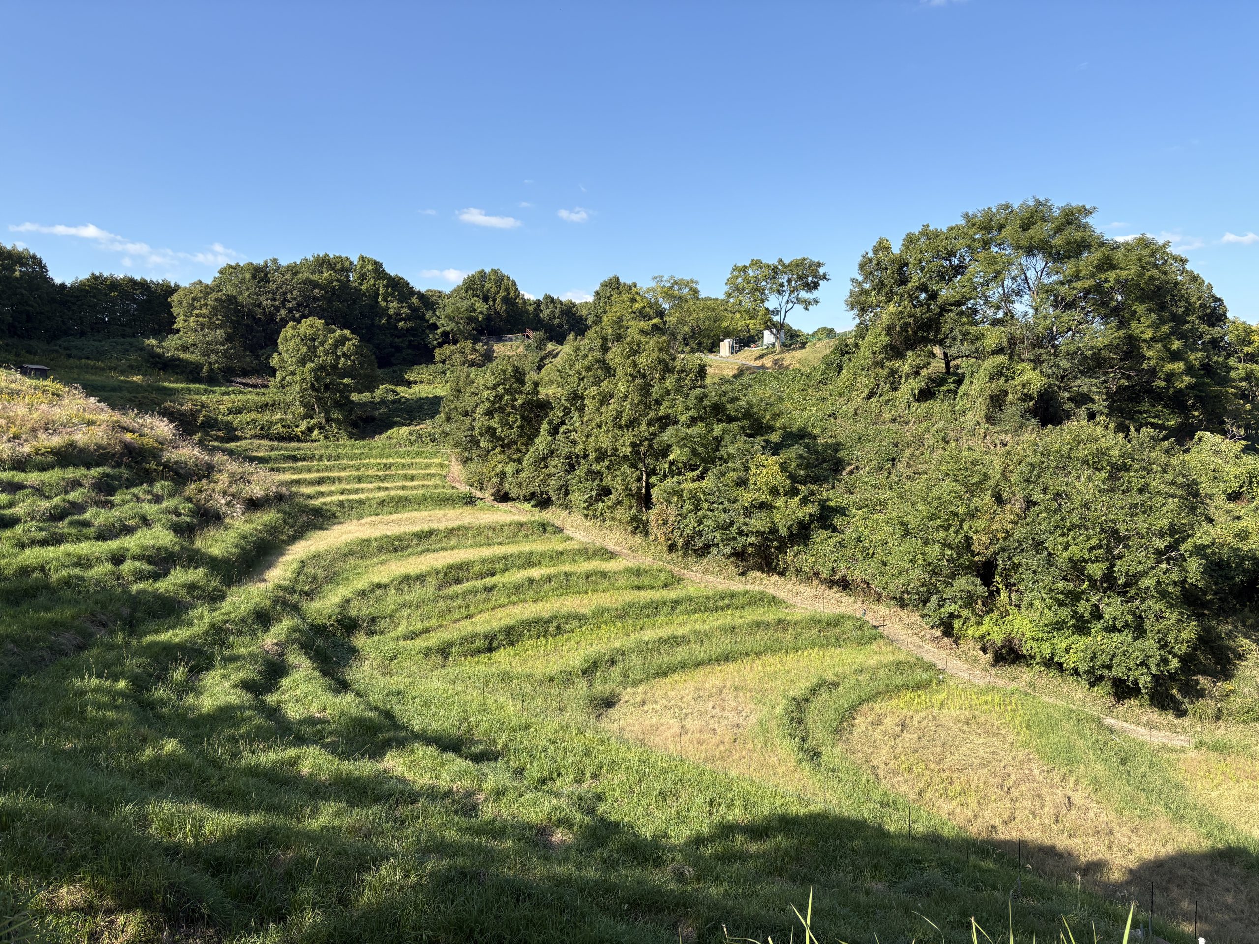 写真は奈良県明日香村にある稲渕の棚田です。奈良県景観資産として登録されており、日本の棚田百選にも選ばれています。棚田全体が見渡せる展望台に立つと、「いま見ている農村風景は、100年前、200年前と大きくは変わっていないのでは」という感覚になり、多くの人の営みや関わりによって紡がれてきたことが想像できます。