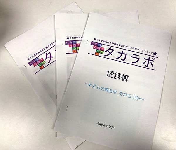令和3年度からスタートする新しい第6次宝塚市総合計画の策定にあたり、めざすまちの姿などについて市民の意見を取りまとめ、市へ提言を行うため「タカラ ミライ ラボ(略称:タカラボ)」を平成31年2月より開催し、このたび提言書が取りまとめられました。