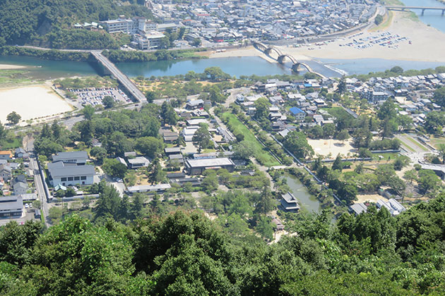 慶長5年(1600)関ヶ原の戦いに際して、毛利輝元に仕えていた吉川広家は、西軍豊臣方でありながら東軍徳川方の勝利を予測し戦では中立を守り、毛利家の存続に奔走します。その結果、家康は毛利家断絶を改め、輝元に周防国・長門国を与えました。広家は、輝元より岩国(3万石)を与えられ、慶長6年岩国に入封、城下町造営に着手します。広家は、横山山頂に城を築き、錦川を天然の外堀として、右岸横山に諸役所や上級武士の居住区を、左岸錦見に中下級武士や町民の居住区を築きました。