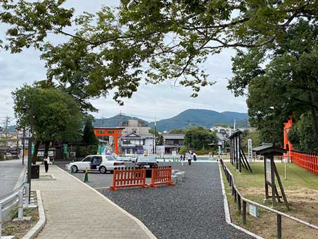 賀茂別雷神社の大鳥居とバス駐車場周辺整備