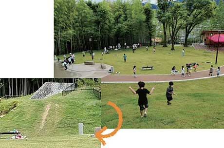 再整備では、子どもたちが自ら考えて自由に遊べるような場にすることをコンセプトとして整備しましたが、公園で子どもたちが自由に遊ぶ姿や、芝すべりができる場所の芝生がその後ズルムケになっている様子を見て、月並みですが「ああ、よかったなあ」と思いました。