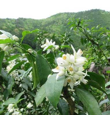 足掛け7年通い続けた道は、実は隣接する下北山村(奈良県)に30年近く通い続けている道でもあります。道はどんどん良くなり、沿道の景観も変化していきますが、北山村の道では年々じゃばらの木が増え、少しずつではありますが栽培面積が拡大していることを実感しています。いつも青々としたじゃばらの木ですが、小さな白い花を咲かせ、やがて緑色の実がなり、黄色く熟していくじゃばらの景観を観るのも、北山村に通う大きな楽しみになりました。
