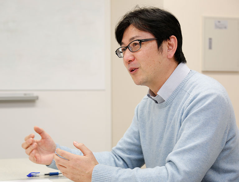 地域産業イノベーショングループ ソーシャルデザインチームの高田。柔和な表情で、言葉を選びながら語る姿から、誠実な仕事ぶりがにじみ出る。チームリーダーとして、ひとりの先輩としてたくさんの話をしてくれた。
