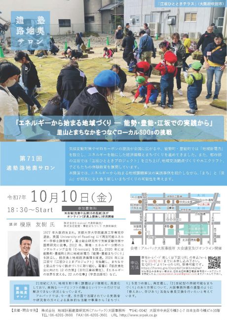 第71回適塾路地奥サロン「エネルギーから始まる地域づくり ー能勢・豊能・江坂での実践からー」を開催します〔10月10日(金)18:30~〕