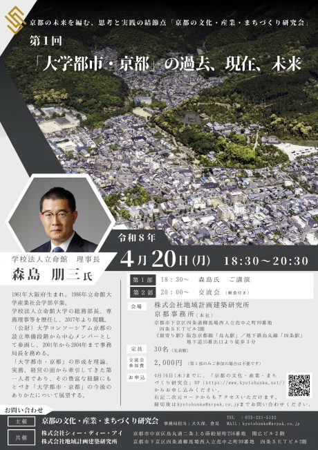 ※案内チラシ(PDF)はこちら⇒ 京都の文化・産業・まちづくり研究会広報チラシ