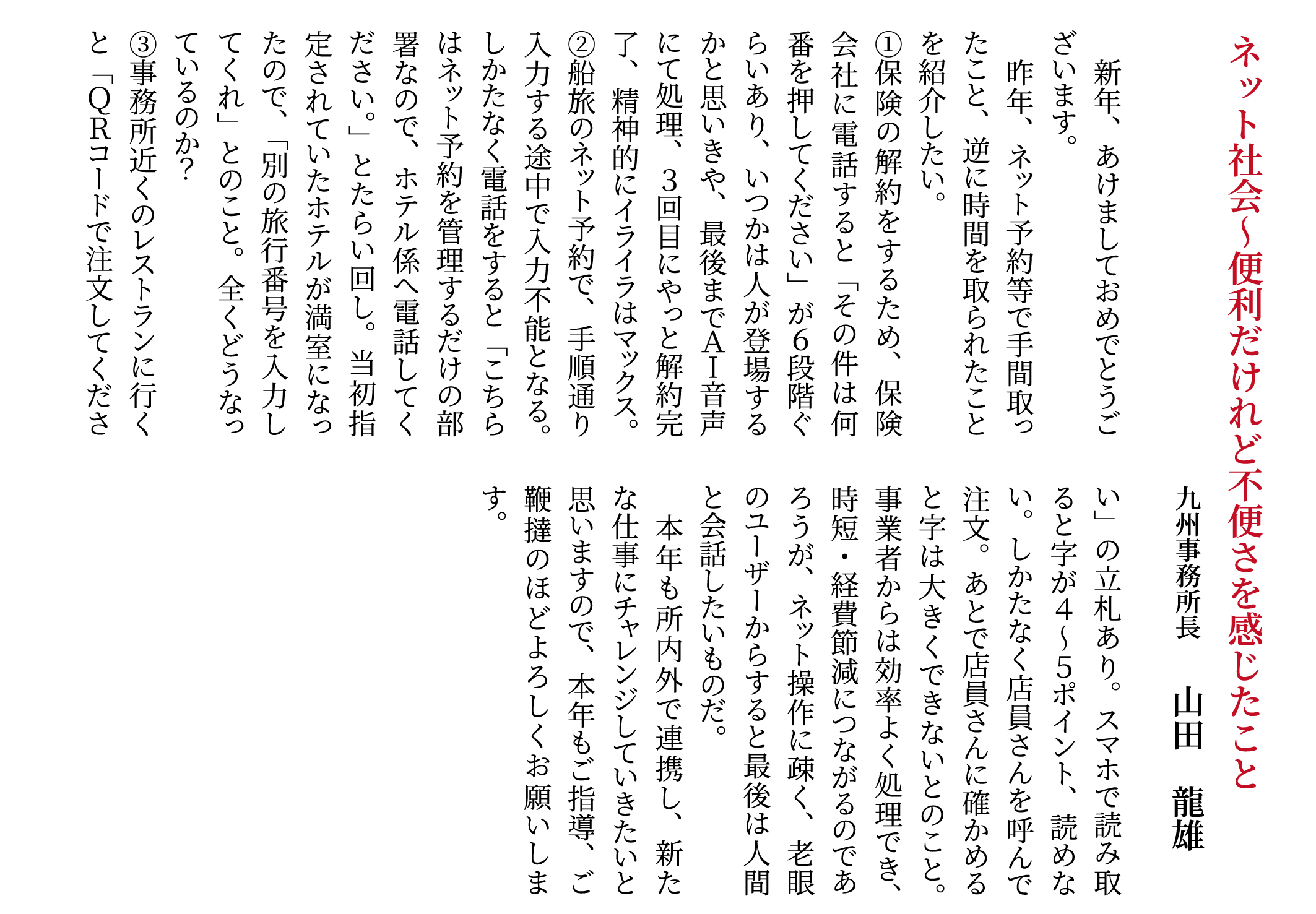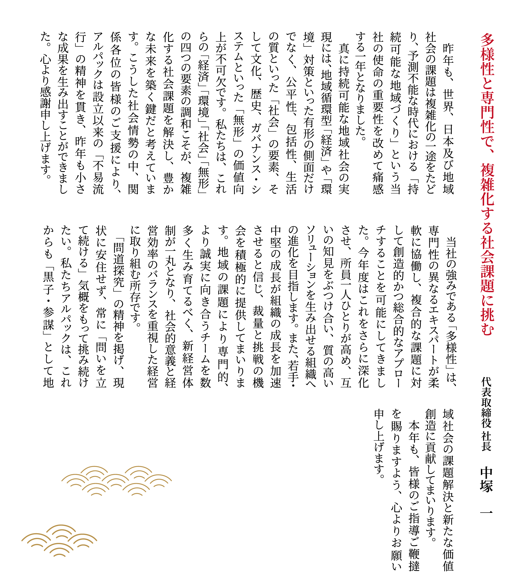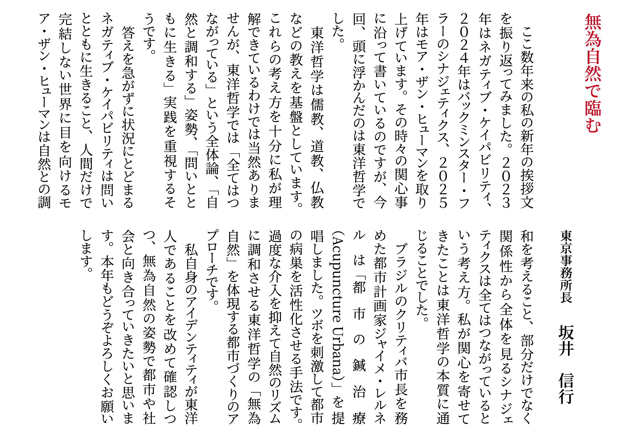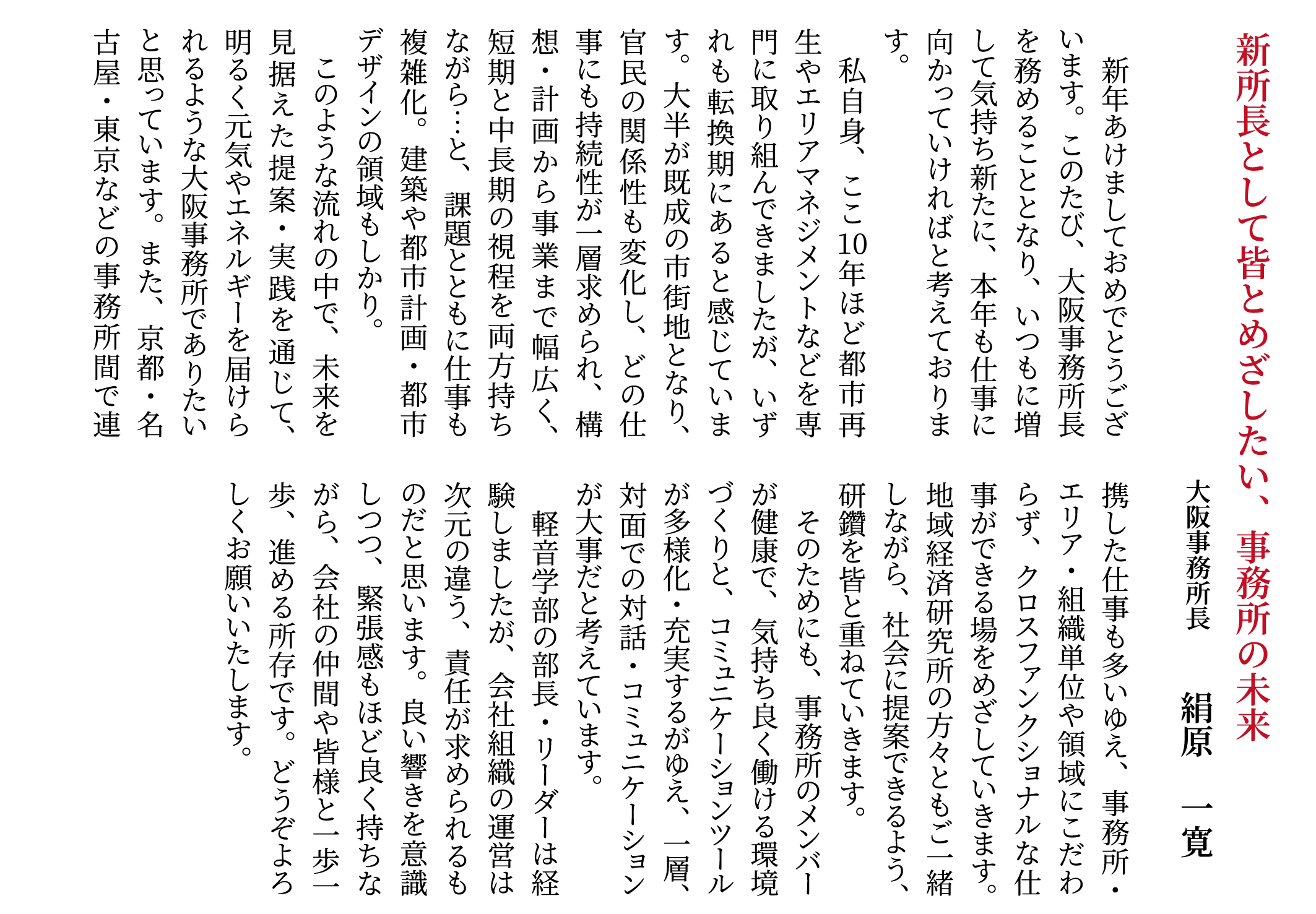 弊社取締役、各事務所長より新年のご挨拶をさせていただきます。